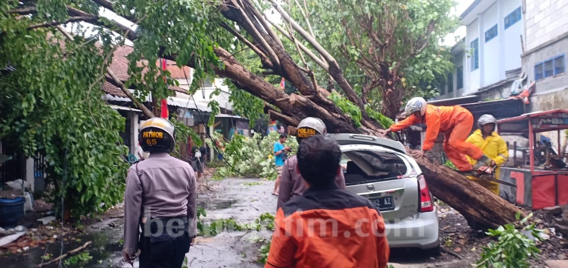 Kejadian menyebabkan puluhan pohon tumbang dan belasan rumah rusak.